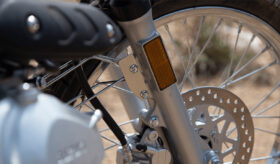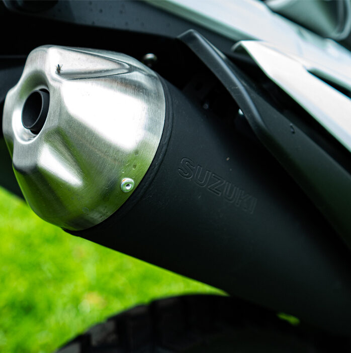 The front exhaust pipe is positioned on the side of the cylinder head to avoid impact while riding on rough roads. The rear high-mounted muffler has an exhaust outlet nearly level with the seat, providing a sportier look. It also enhances the motorcycle’s water-crossing ability, with a specially designed stainless steel tail cover that resists corrosion and suits off-road conditions.