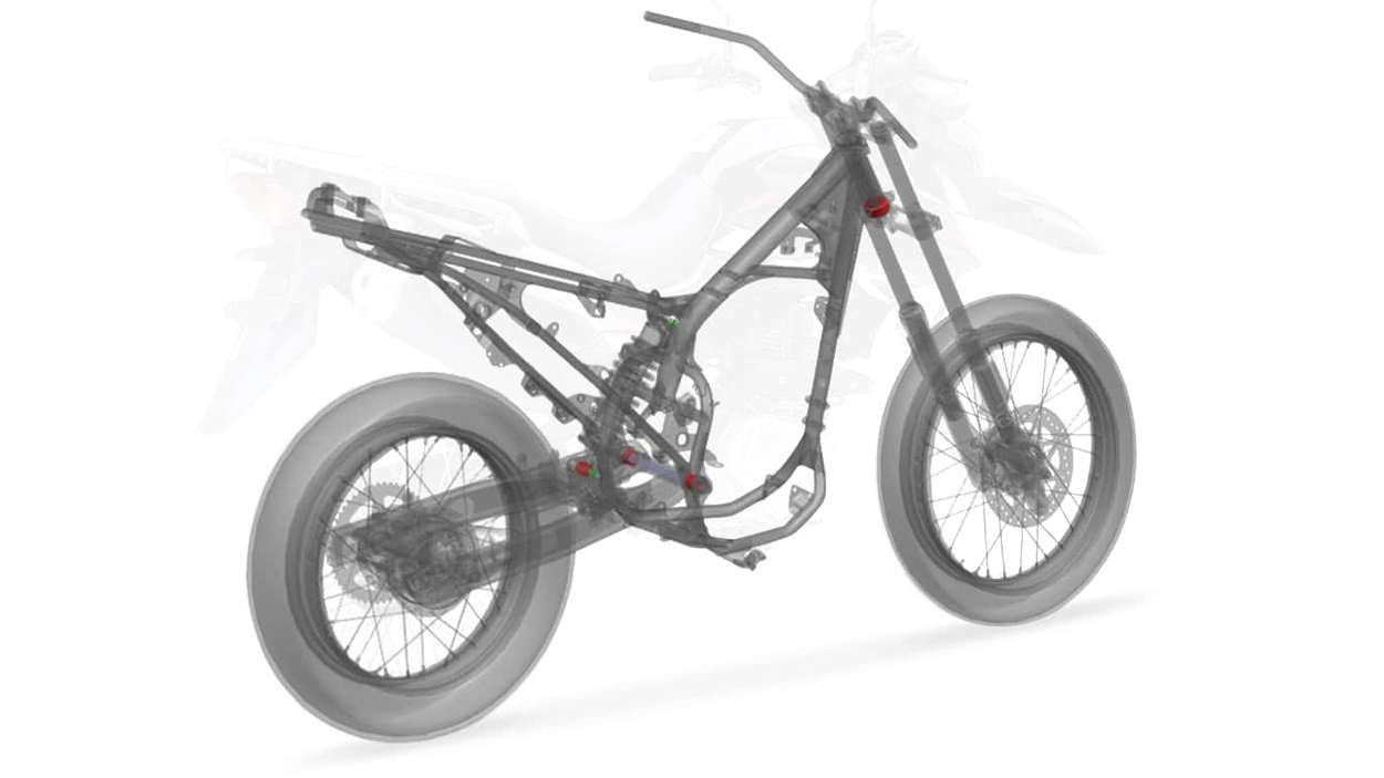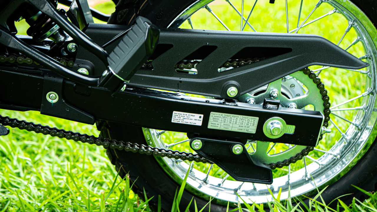 The cradle-style frame structure wraps around the engine, paired with a high-strength steel rear swingarm. Key joints, such as those connecting the frame to the lower bracket and connecting the central shock absorber to the rear swingarm, are reinforced with high-strength roller bearings to meet the demands of off-road standing riding and jumps. This also improves overall handling and steering stability while enhancing safety and comfort.